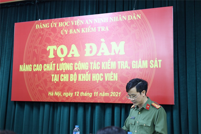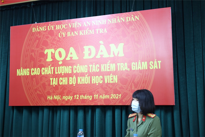 Thực hiện chương trình công tác kiểm tra, giám sát năm 2021, ngày 12/11/2021, tại hội trường 102 nhà HV2, Uỷ ban kiểm tra (UBKT) Đảng ủy Học viện An ninh nhân dân (ANND) đã tổ chức Tọa đàm với chủ đề “Nâng cao chất lượng công tác kiểm tra, giám sát tại chi bộ khối học viên”.