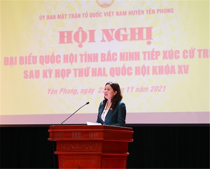 Thay mặt Đoàn đại biểu Quốc hội tỉnh Bắc Ninh, đồng chí Trần Thị Vân đã thông tin đến cử tri kết quả Kỳ họp thứ 2, Quốc hội khóa XV.
