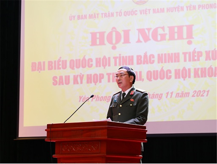 Chiều 22/11/2021, Trung tướng Trần Quốc Tỏ, Uỷ viên Trung ương Đảng, Thứ trưởng Bộ Công an và Đoàn đại biểu Quốc hội tỉnh Bắc Ninh đã dự Hội nghị đại biểu Quốc hội tỉnh Bắc Ninh tiếp xúc cử tri sau Kỳ họp thứ 2, Quốc hội khóa XV tại huyện Yên Phong.
