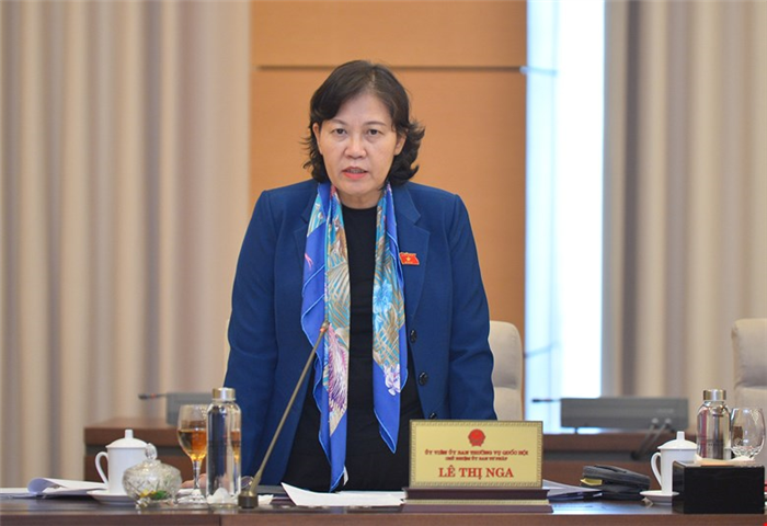 Chủ nhiệm Ủy ban Tư pháp Lê Thị Nga thảo luận tại phiên họp.