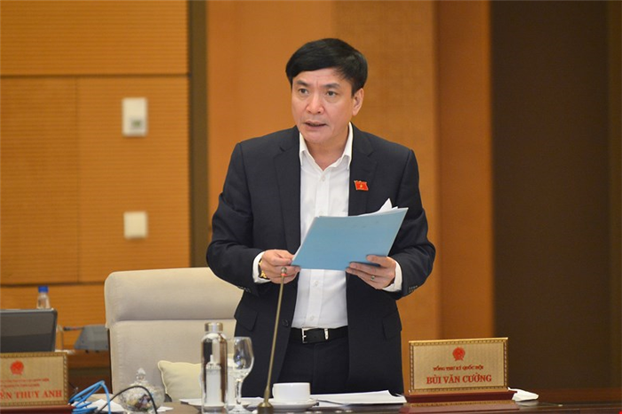 Tổng Thư ký Quốc hội Bùi Văn Cường trình bày báo cáo tại phiên họp.