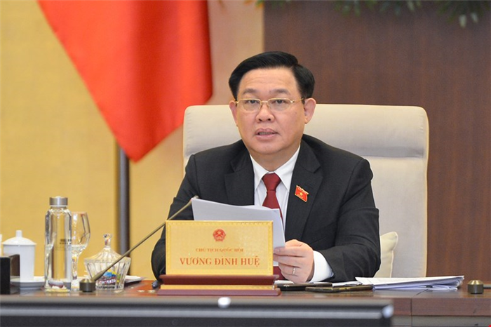 Chủ tịch Quốc hội Vương Đình Huệ phát biểu tại phiên họp.