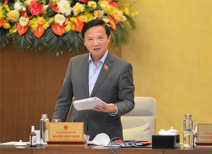 Phó Chủ tịch Quốc hội Nguyễn Khắc Định thảo luận tại phiên họp.