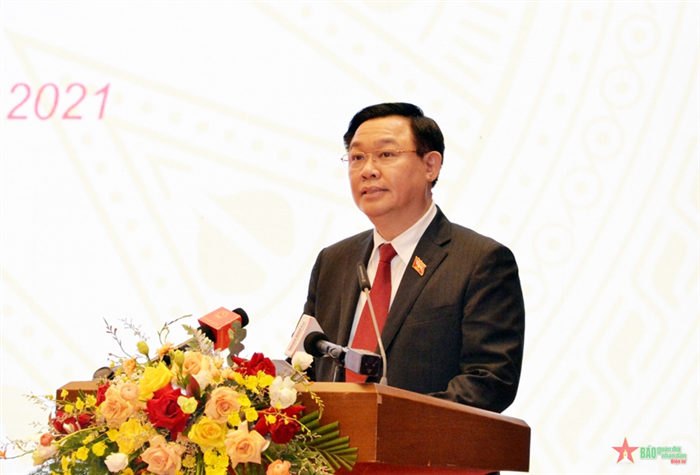Chủ tịch Quốc hội Vương Đình Huệ phát biểu tại buổi lễ. |