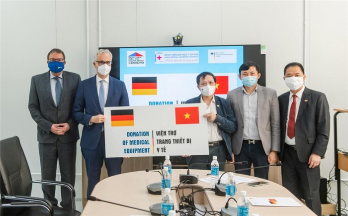 Ngày 24/11, Đại sứ Đức tại Việt Nam Guido Hildner đã trao 75 máy thở, 15 Monitor và 20.000 máy đo nồng độ ôxy và nhịp tim cho Bệnh viện trường Đại học Y Hà Nội.