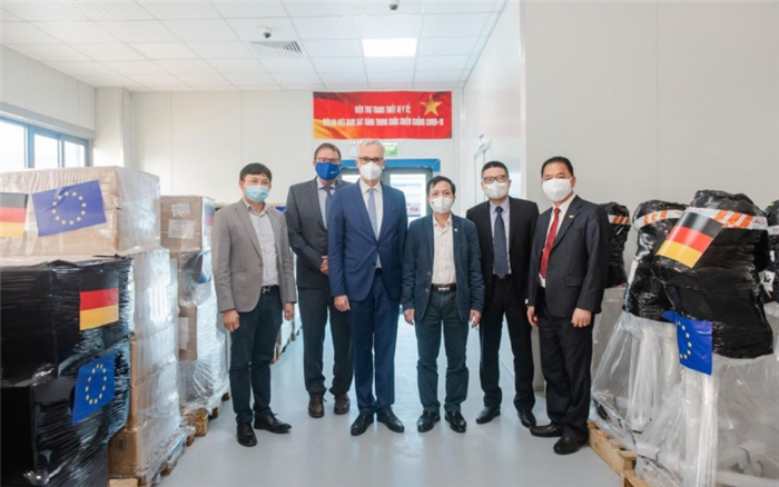 Hồi tháng 8, Thủ tướng Chính phủ Phạm Minh Chính đã đề nghị Thủ tướng Đức Angela Merkel hỗ trợ Việt Nam trong cuộc chiến chống đại dịch COVID-19, đặc biệt là cung cấp vaccine và máy móc y tế. Trong thư trả lời Thủ tướng Phạm Minh Chính, Thủ tướng Angela Merkel đã hứa bên cạnh vaccine sẽ cung cấp máy thở và máy đo nồng độ ôxy và nhịp tim. Những máy móc y tế này đã đến sân bay quốc tế Nội Bài tại Hà Nội ngày 13/11 và được chuyển tiếp đến Bệnh viện điều trị người bệnh COVID-19.