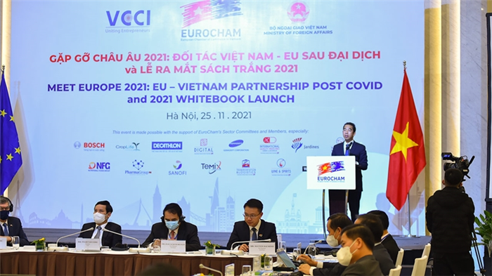 Ngày 25/11/2021, tại Hà Nội, Bộ Ngoại giao đã phối hợp với Hiệp hội Doanh nghiệp châu Âu tại Việt Nam (EuroCham) tổ chức Hội nghị “Gặp gỡ Châu Âu 2021: Đối tác Việt Nam – EU hậu COVID-19 và công bố sách Trắng Euro Cham 2021” nhằm tăng cường hợp tác giữa các địa phương của Việt Nam với các cơ quan, đối tác châu Âu trên các lĩnh vực hai bên cùng quan tâm.