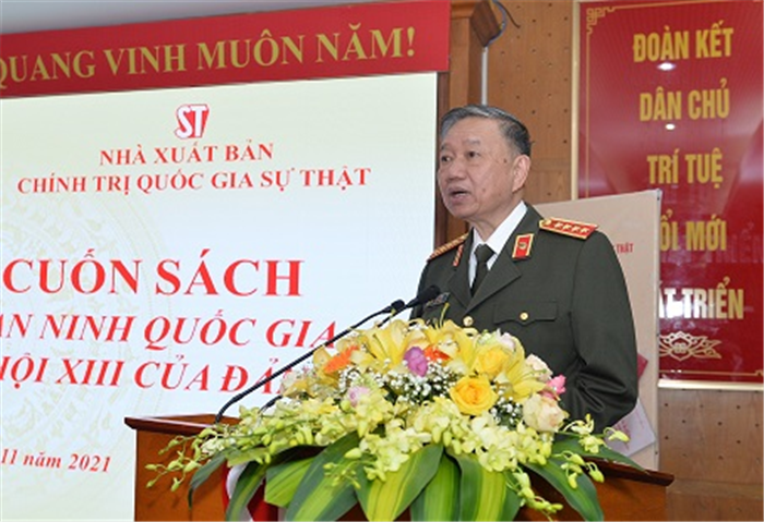 Ngày 30/11/2021, tại Hà Nội, Bộ Công an phối hợp với Nhà xuất bản Chính trị quốc gia Sự thật tổ chức Lễ giới thiệu cuốn sách “Những điểm mới về an ninh quốc gia trong Văn kiện Đại hội XIII của Đảng”. Sách do Đại tướng, GS.TS Tô Lâm, Ủy viên Bộ Chính trị, Bộ trưởng Bộ Công an làm Chủ biên; Nhà xuất bản Chính trị quốc gia Sự thật xuất bản.