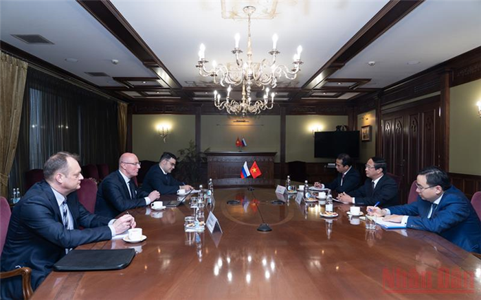 Phó Thủ tướng Lê Văn Thành làm việc với Phó Thủ tướng Dmitry Chernyshenko. (Ảnh: Thanh Thể)