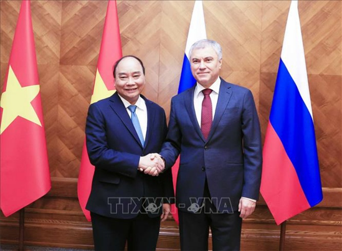 Ngày 1/12, theo giờ địa phương, trong khuôn khổ chuyến thăm chính thức đến Liên bang Nga, Chủ tịch nước Nguyễn Xuân Phúc đã hội kiến với Chủ tịch Duma Quốc gia (Hạ viện) Nga Vyacheslav Volodin.