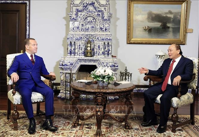 Phó chủ tịch Hội đồng An ninh Nga, Chủ tịch đảng Nước Nga thống nhất Medvedev nhiệt liệt chào mừng Chủ tịch nước Nguyễn Xuân Phúc và Phu nhân thăm chính thức Liên bang Nga; đánh giá cao ý nghĩa của chuyến thăm, góp phần mở ra giai đoạn mới phát triển mạnh mẽ, toàn diện, hiệu quả, lâu dài của quan hệ Đối tác chiến lược toàn diện Việt Nam - Nga; khẳng định Hội đồng An ninh Nga tiếp tục ủng hộ và thúc đẩy hợp tác giữa hai nước trên các lĩnh vực.
