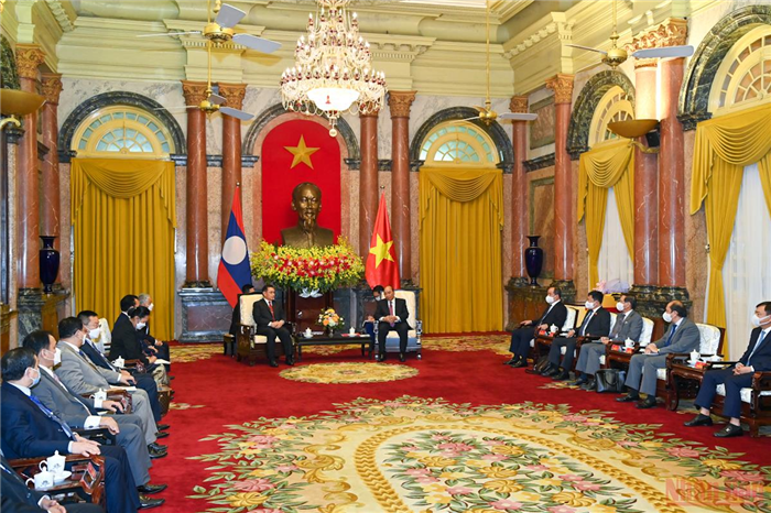 Hai nhà lãnh đạo nhất trí cao về phương hướng hợp tác toàn diện giữa hai nước trong thời gian tới, trong đó nhấn mạnh việc tiếp tục triển khai các thỏa thuận hợp tác giữa hai Đảng, hai Nhà nước, nhất là kết quả chuyến thăm hữu nghị chính thức Việt Nam của Tổng Bí thư, Chủ tịch nước Lào Thongloun Sisoulith tháng 6/2021 và chuyến thăm hữu nghị chính thức Lào của Chủ tịch nước Việt Nam Nguyễn Xuân Phúc tháng 8/2021.