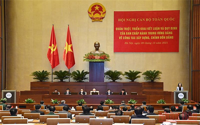 Sáng 9/12, Bộ Chính trị đã tổ chức Hội nghị Cán bộ toàn quốc quán triệt, triển khai thực hiện Kết luận và Quy định của Ban Chấp hành Trung ương về xây dựng, chỉnh đốn Đảng theo hình thức trực tuyến. Tổng Bí thư Nguyễn Phú Trọng chủ trì và phát biểu chỉ đạo Hội nghị.