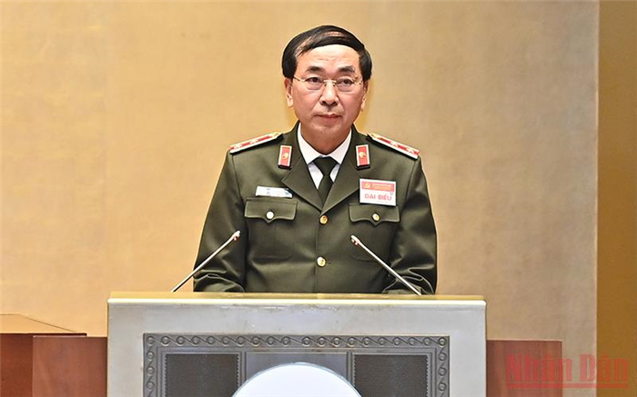 Đồng chí Trần Quốc Tỏ, Ủy viên Ban Chấp hành Trung ương Đảng, Thứ trưởng Công an phát biểu tham luận.
