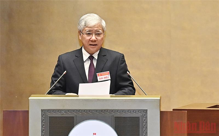 Đồng chí Đỗ Văn Chiến, Bí thư Trung ương Đảng, Chủ tịch Ủy ban Trung ương Mặt trận Tổ quốc Việt Nam phát biểu tham luận.