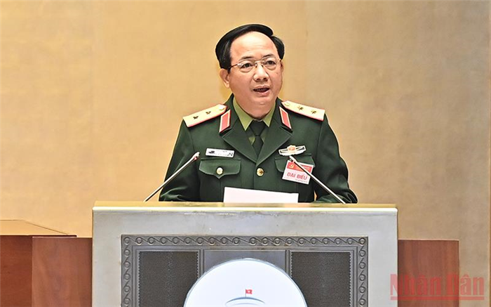 Đồng chí Trịnh Văn Quyết, Ủy viên Trung ương Đảng, Phó Chủ nhiệm Tổng cục chính trị Quân đội nhân dân Việt Nam phát biểu tham luận.