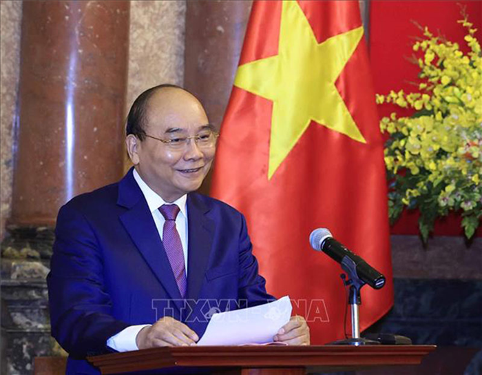 Phát biểu tại buổi tiếp, Chủ tịch nước Nguyễn Xuân Phúc chúc mừng 26 đồng chí được phong hàm Đại sứ lần này; khẳng định đây là chức danh ngoại giao cao quý nhất, thể hiện sự ghi nhận của Đảng và Nhà nước đối với những đóng góp của các cá nhân trong công tác đối ngoại.