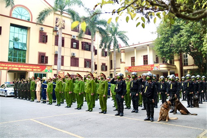 Lãnh đạo các Cục nghiệp vụ, Công an TP. Hà Nội chứng kiến lễ ra quân thực hiện cao điểm bảo vệ Tết Nguyên đán Nhâm Dần 2022. |