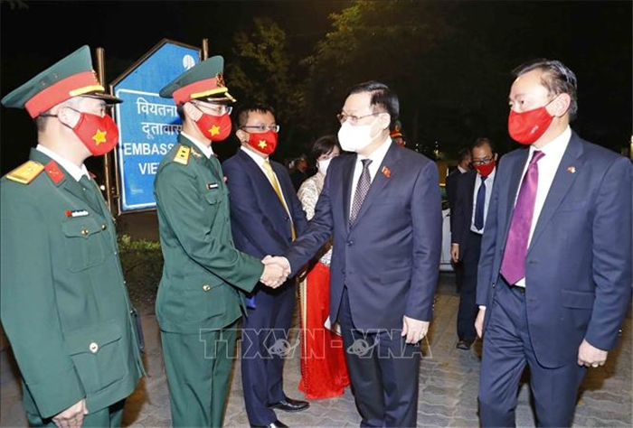 Ngay sau khi đến Thủ đô New Delhi, bắt đầu thăm chính thức Cộng hòa Ấn Độ, Chủ tịch Quốc hội Vương Đình Huệ và Đoàn Đại biểu cấp cao Quốc hội Việt Nam đã tới Trụ sở Đại sứ quán và gặp gỡ cộng đồng người Việt Nam tại Ấn Độ.