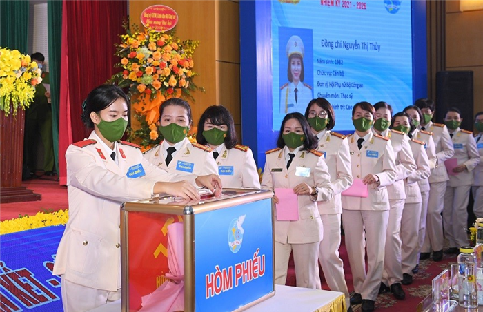 Các đại biểu bỏ phiếu bầu Ban Chấp hành Hội Phụ nữ Bộ Công an khóa IX, nhiệm kỳ 2021 – 2026.