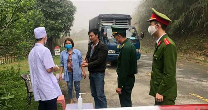 Lực lượng Công an và Quân đội phối hợp kiểm soát tại chốt phòng, chống dịch COVID-19.