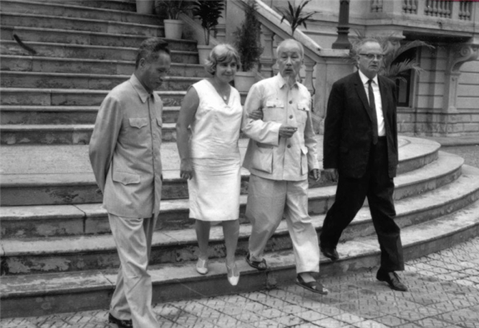 Chủ tịch Hồ Chí Minh tiếp nhà báo Wilfred Burchett tại Phủ Chủ tịch, năm 1966. Ảnh: Bảo tàng Báo chí Việt Nam |