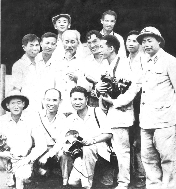 Chủ tịch Hồ Chí Minh với phóng viên Báo Việt Nam độc lập tại Thái Nguyên, tháng 1-1964. Ảnh: Khu di tích Chủ tịch Hồ Chí Minh tại Phủ Chủ tịch |