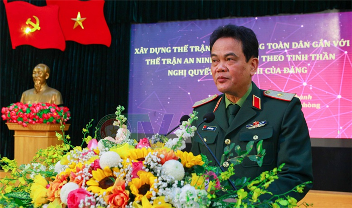 Thượng tướng, PGS.TS Nguyễn Văn Thành - Phó Chủ tịch Hội đồng Lý luận Trung ương phát biểu chỉ đạo tại Hội thảo.