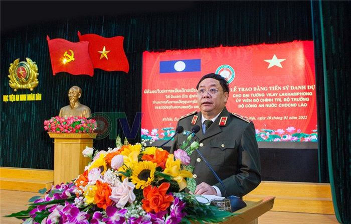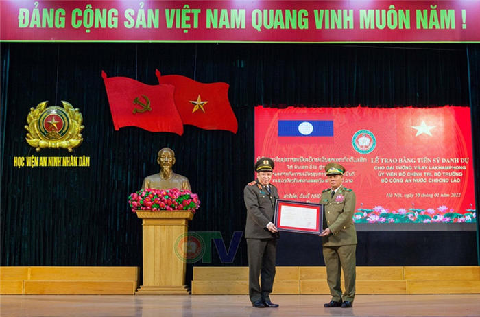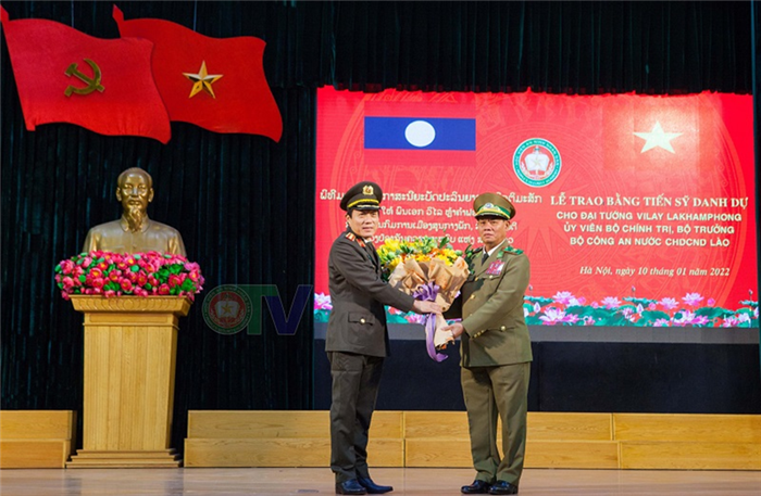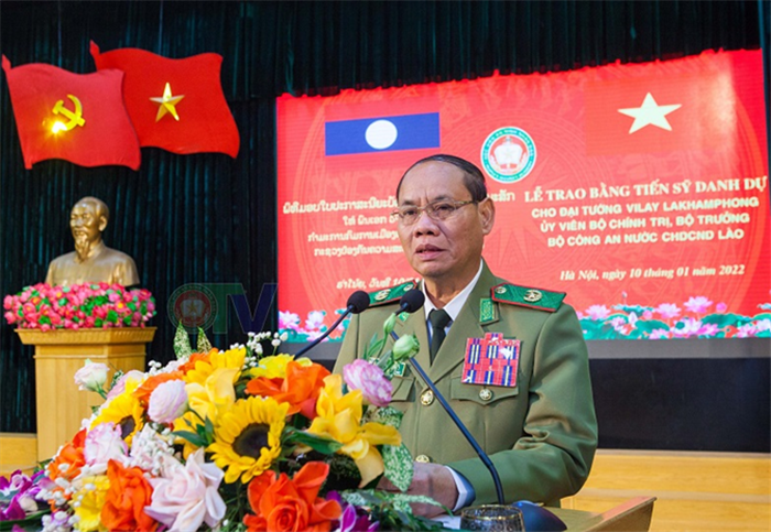 Sáng ngày 10/01/2022, tại Hà Nội, Học viện An ninh nhân dân Việt Nam đã long trọng tổ chức Lễ trao bằng tiến sĩ danh dự cho đồng chí Đại tướng Vi-lay Lạ-khăm-phong, Ủy viên Bộ Chính trị, Bộ trưởng Bộ Công an nước CHDCND Lào.