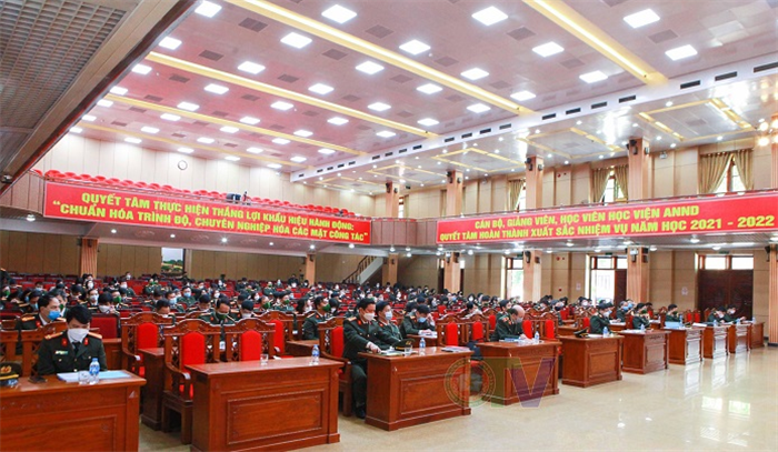 Cuối cùng, đồng chí Giám đốc Học viện yêu cầu toàn thể cán bộ, giảng viên, công nhân viên và học viên Học viện phải đoàn kết, quyết tâm, nỗ lực phấn đấu bằng tinh thần và trách nhiệm cao nhất để hoàn thành xuất sắc nhiệm vụ được giao, đạt nhiều thành tích cao hơn nữa trong công tác, học tập và hoàn thành xuất sắc nhiệm vụ năm học 2021 - 2022.