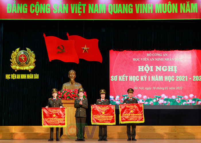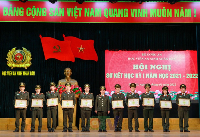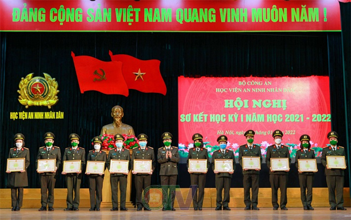Cũng tại Hội nghị quan trọng này, được sự ủy quyền của các Cơ quan chức năng, Trung tướng, PGS.TS Lê Văn Thắng - Bí thư Đảng ủy, Giám đốc Học viện cùng các đồng chí trong Đảng ủy, Ban Giám đốc Học viện đã trao cờ của Chính phủ và của Bộ Công an năm học 2020 - 2021, Bằng khen và giấy khen của Giám đốc Học viện ANND cho những tập thể và các cá nhân đạt thành tích xuất sắc trong năm 2021 và Học kỳ I năm học 2021 – 2022./.