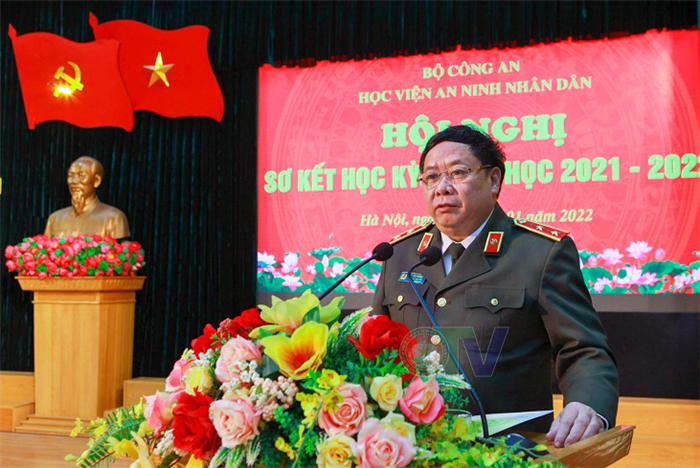 Hòa trong không khí rộn ràng cả nước chuẩn bị đón mừng xuân mới, xuân Nhâm Dần 2022, chiều ngày 18/01/2022, tại Hội trường lớn, Học viện An ninh nhân dân (ANND) tổ chức Hội nghị Sơ kết học kỳ I năm học 2021-2022. Trung tướng, PGS.TS Lê Văn Thắng - Bí thư Đảng ủy, Giám đốc Học viện tới dự và chủ trì Hội nghị.