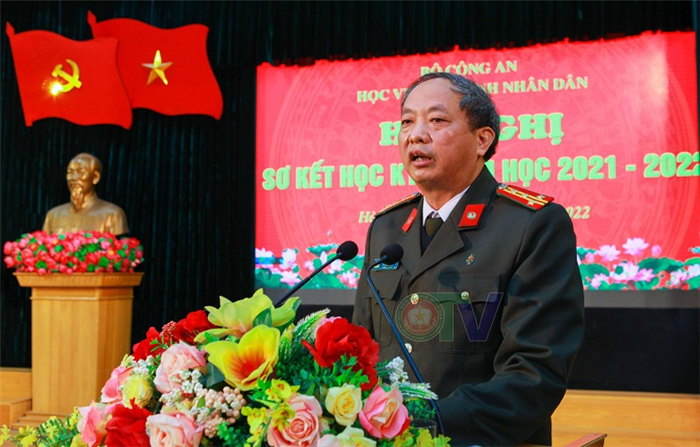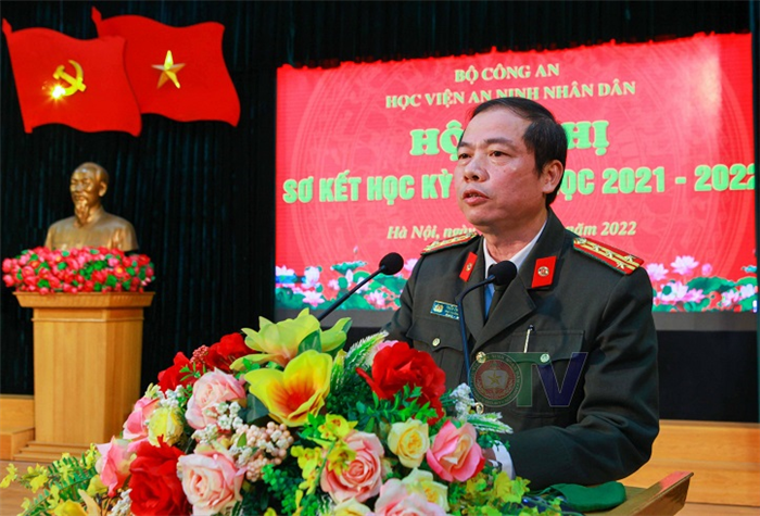 Phát biểu chỉ đạo tại Hội nghị, Trung tướng, PGS.TS Lê Văn Thắng - Bí thư Đảng uỷ, Giám đốc Học viện ANND thông báo tóm tắt nội dung Hội nghị Công an toàn quốc lần thứ 77, nhiệt liệt biểu dương toàn thể cán bộ, giảng viên, công nhân viên và học viên Học viện đã nỗ lực phấn đấu, hoàn thành xuất sắc nhiệm vụ công tác Học kỳ I năm học 2021 – 2022. Đồng thời, đồng chí cũng nêu định hướng cần chú ý trong Học kỳ II.