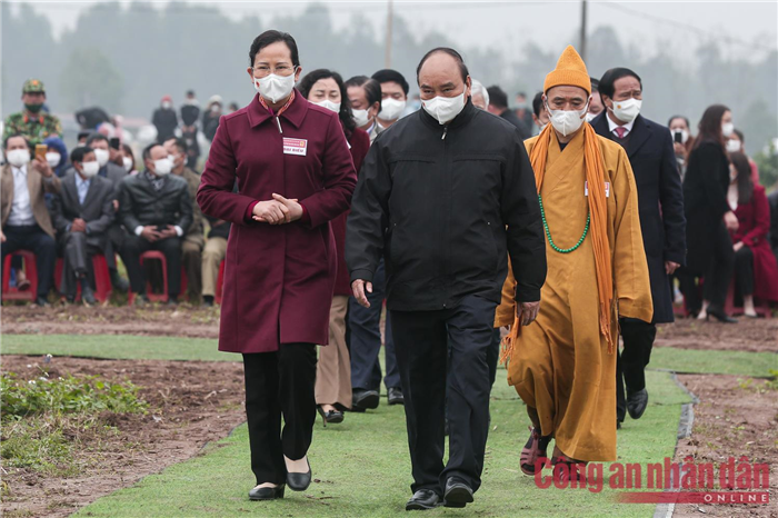 Chủ tịch nước Nguyễn Xuân Phúc cùng các đại biểu tiến lên đàn tế làm lễ dâng hương