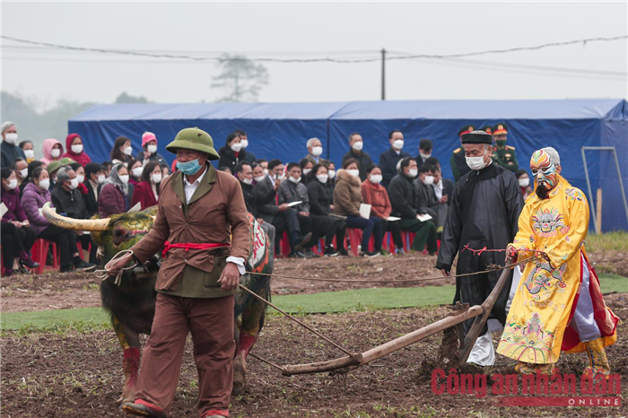 Ông Nguyễn Ngọc An (SN 1950) được chọn để vào vai vua Lê Đại Hành. Lão nông này đội mũ Cửu Long, mặc áo Hoàng Bào xuống ruộng đi cày 3 sá, theo sau vua là đoàn gieo hạt giống bao gồm đỗ xanh, lạc và hạt thóc.