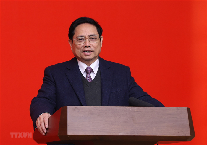 Thủ tướng Phạm Minh Chính phát biểu kết luận hội nghị. (Ảnh: Dương Giang/TTXVN)