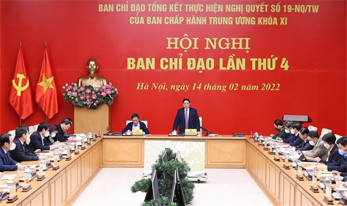 Ngày 14/2, tại trụ sở Chính phủ, Thủ tướng Chính phủ Phạm Minh Chính, Trưởng Ban Chỉ đạo Trung ương tổng kết thực hiện Nghị quyết số 19-NQ/TW của Ban Chấp hành Trung ương khóa XI về tiếp tục đổi mới chính sách, pháp luật về đất đai trong thời kỳ đẩy mạnh toàn diện công cuộc đổi mới, tạo nền tảng để đến năm 2020 nước ta cơ bản trở thành nước công nghiệp theo hướng hiện đại (Ban Chỉ đạo) đã chủ trì Hội nghị lần thứ 4 của Ban Chỉ đạo.