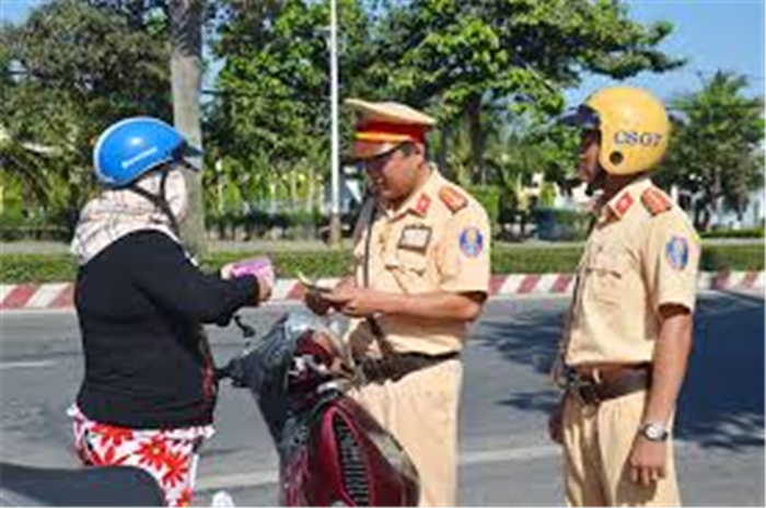 Cảnh sát giao thông kiểm tra phương tiện khi tham gia giao thông.