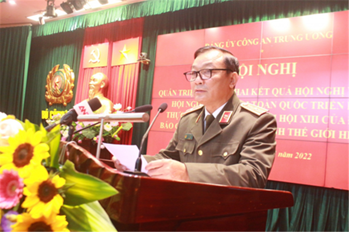 Thiếu tướng Nguyễn Công Bẩy, Phó Cục trưởng Cục Công tác đảng và Công tác chính trị quán triệt Nghị quyết số 05 của Đảng ủy Công an Trung ương.