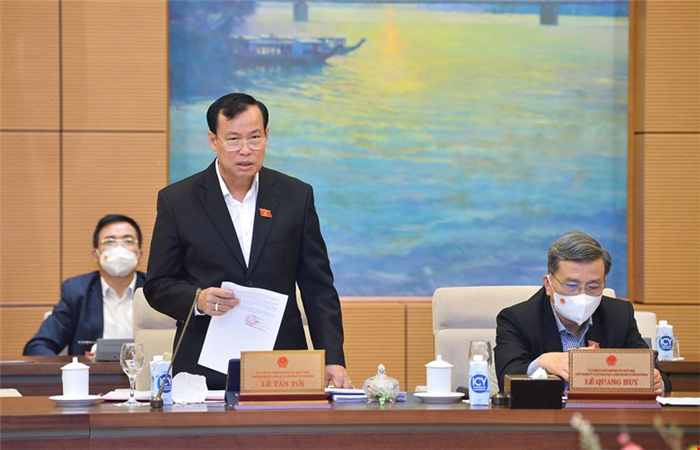 Chủ nhiệm Ủy ban Quốc Phòng và An ninh Lê Tấn Tới thảo luận tại phiên họp.