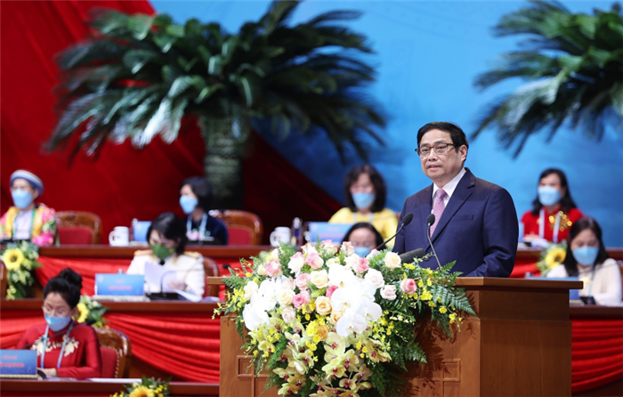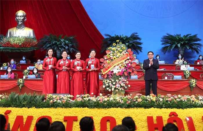 Thay mặt lãnh đạo Đảng, Nhà nước, Thủ tướng Chính phủ Phạm Minh Chính chúc mừng, ghi nhận và biểu dương những thành tích to lớn của phong trào phụ nữ và Hội LHPN Việt Nam trong nhiệm kỳ qua. Đồng thời, hoan nghênh, ghi nhận và cảm ơn sự lãnh đạo, chỉ đạo sát sao của các cấp ủy đảng, sự phối hợp chặt chẽ của chính quyền, Mặt trận Tổ quốc, các ban, bộ, ngành, đoàn thể, sự ủng hộ, giúp đỡ của nhân dân, cộng đồng doanh nghiệp trong công tác phụ nữ và bình đẳng giới.