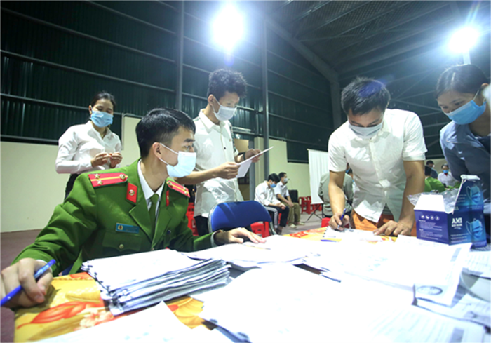 Cán bộ Công an thức xuyên đêm làm căn cước công dân cho nhân dân. |