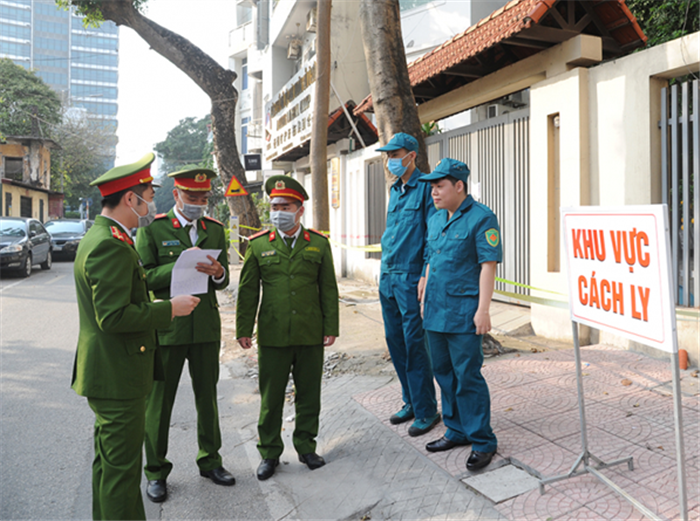 Lực lượng Bảo vệ dân phố phối hợp lực lượng Công an làm nhiệm vụ bảo đảm ANTT tại một chốt kiểm soát phòng, chống dịch COVID-19.