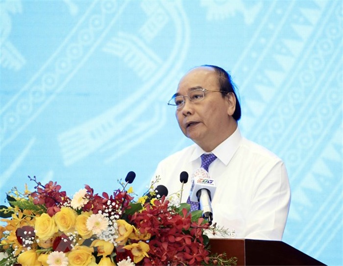 Chủ tịch nước Nguyễn Xuân Phúc phát biểu tại hội thảo. (Ảnh: Thống Nhất/TTXVN)