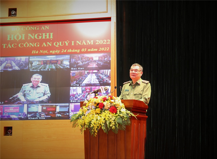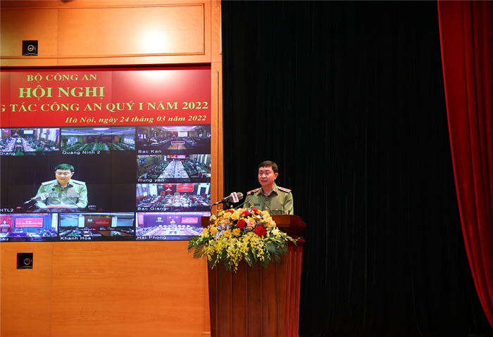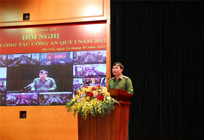 Tại Hội nghị, Trung tướng Tô Ân Xô, Chánh Văn phòng Bộ Công an đã trình bày báo cáo tóm tắt tình hình, kết quả công tác công an Quý I năm 2022, nhiệm vụ trọng tâm công tác Quý II/2022, nêu rõ: Quý I/2022, Đảng ủy Công an Trung ương, lãnh đạo Bộ Công an đã tập trung chỉ đạo Công an các đơn vị, địa phương thực hiện nghiêm túc, hiệu quả các chỉ đạo của lãnh đạo Đảng, Nhà nước về bảo đảm an ninh quốc gia, giữ gìn trật tự, an toàn xã hội và phòng, chống dịch Covid-19 theo phương châm thích ứng linh hoạt, an toàn. Lực lượng Công an đã triển khai quyết liệt nhiều cao điểm chuyên đề, trọng tâm là cao điểm tấn công trấn áp tội phạm; giữ vững an ninh chính trị, bảo đảm trật tự, an toàn xã hội, tạo môi trường xã hội ổn định, bình yên, phục vụ việc triển khai các chủ trương, chính sách của Đảng, Nhà nước, Quốc hội, Chính phủ, góp phần thúc đẩy phục hồi phát triển kinh tế - xã hội, phòng, chống dịch Covid-19 và tạo thuận lợi để nhân dân vui Xuân, đón Tết an toàn, phấn khởi.