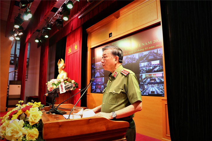 Ngày 24/3/2022, tại Hà Nội, Bộ Công an tổ chức Hội nghị sơ kết công tác công an Quý I năm 2022 theo hình thức trực tuyến từ trụ sở Bộ Công an đến Công an các tỉnh, thành phố trực thuộc Trung ương. Đại tướng Tô Lâm, Ủy viên Bộ Chính trị, Bí thư Đảng ủy Công an Trung ương, Bộ trưởng Bộ Công an chủ trì Hội nghị.
