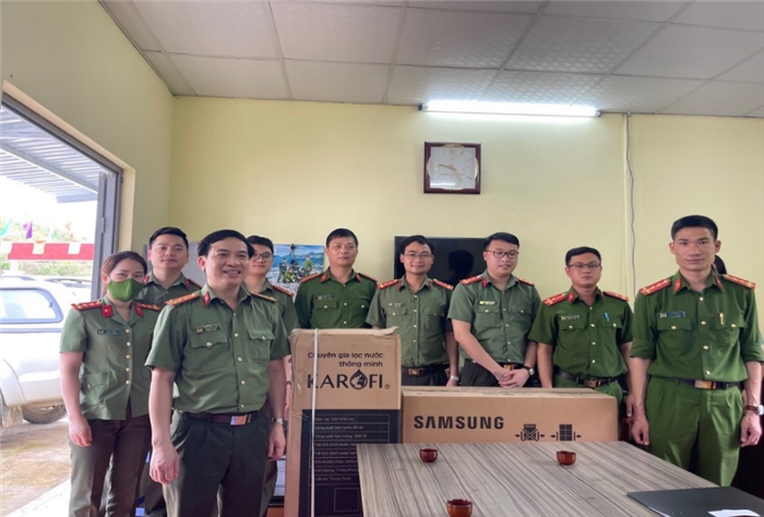 Phát huy tinh thần hỗ trợ đồng chí, đồng đội, chia sẻ khó khăn, khích lệ tinh thần cán bộ, chiến sĩ đang thực hiện nhiệm vụ bảo vệ an ninh, trật tự ở địa bàn xã, Đoàn công tác đã tặng 01 máy lọc nước và 01 máy điều hòa với tổng giá trị 15 triệu đồng cho Công an xã Trùng Khánh.