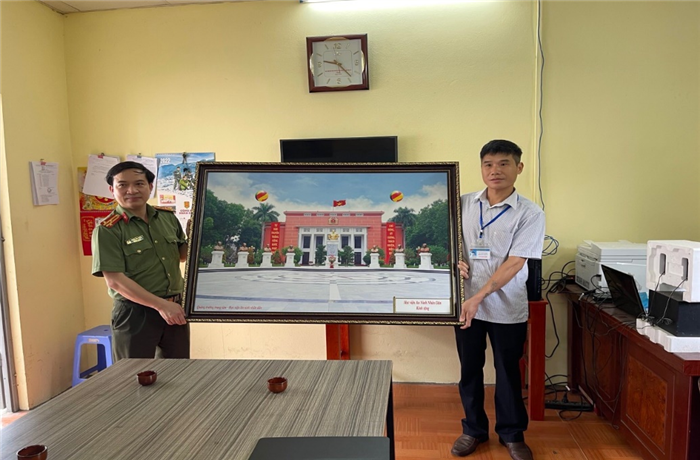 Đoàn công tác trao tặng bức tranh lưu niệm “Quảng trường Trung tâm” của Học viện ANND cho Công an huyện Văn Lãng và Đảng ủy, HĐND, UBND xã Trùng Khánh.