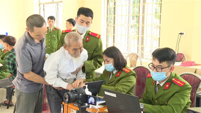 Lực lượng Công an tận tình phục vụ người dân làm thủ tục cấp căn cước công dân gắn chip.