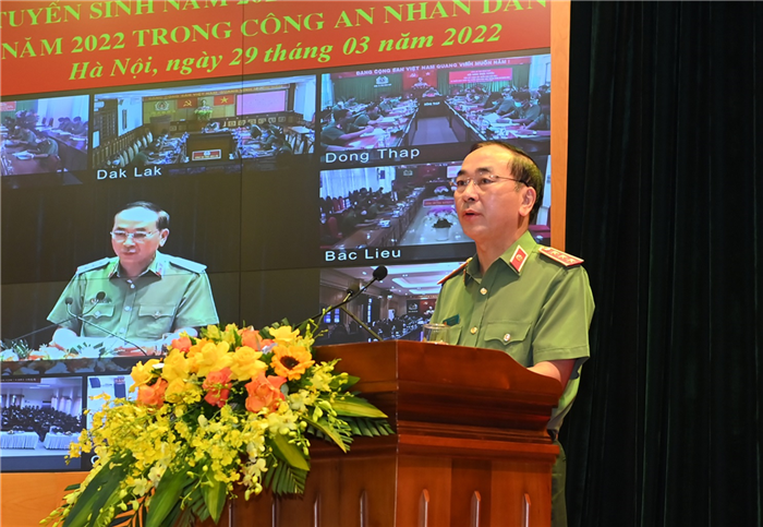 Sáng 29/3/2022, tại Hà Nội, Bộ Công an tổ chức Hội nghị tổng kết công tác tuyển sinh năm 2021 và triển khai công tác tuyển sinh năm 2022 trong Công an nhân dân (CAND). Thượng tướng, PGS.TS Trần Quốc Tỏ, Uỷ viên Trung ương Đảng, Thứ trưởng Bộ Công an chủ trì Hội nghị.